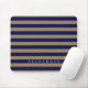 Custom Brown Navy Blue Stripes Monogrammed Mouse Mat