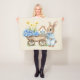 Introducing our Custom Bunny with Blue Flowers baby blanket! With a little rabbit holding blue wildflowers, a wooden cart with many blue wildflowers and a little house in the back, this baby blanket brings charm and playfulness to any room!