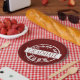 This modern burgundy red graduate paper plate features a white "class of" wording inside a circle that looks like a stamp. Simply enter the graduate’s name and graduation year. You can change the background colour by clicking on the customise button.