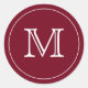 Custom Burgundy Red White Monogram Letter Classic Round Sticker