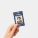 Showcase your team with a professional and timeless vertical badge design. The sophisticated deep navy background provides a polished look that elegantly frames an employee's photo and essential details. This minimalist and clean layout creates a professional impression, perfect for maintaining a unified and recognisable corporate identity.