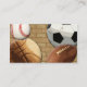 Custom business card design features sports theme with soccer ball, basketball, baseball, volleyball, football and golf ball. Great for any business. easy to design online and customise with your information. Business card printing for small business, personal or any use!