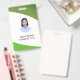 Clean custom employee badge with photo and text in modern curved standard presentation in violet,indigo,purple colors