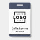 Easily personalize this custom employee name badge with your own company logo and qr code or barcode. Available with different background colors and attachments. No minimum order quantity.