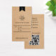 This customisable clothing label hang tag on a kraft background adds a professional touch to your products. Featuring your business logo, custom text, pricing details, and a scannable QR code for easy online access, this tag is perfect for clothing brands, boutiques, or small businesses. The sleek and modern design includes social media icons to boost engagement and provide a seamless connection between your products and your online presence. It is ideal for showcasing size, style, and price while reinforcing your brand identity.