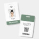 Easily personalise this Custom Employee Name Badge with Photo, Scan Bar Code and business logo. A simple business design in cool organic eco-friendly sage green and white colours fully customisable in front and back sizes, sans-serif basic and modern fonts and a professional and clear look. Perfect for small business, clinic, hospital, or as BSN Nurse Badge. Avaiable with lanyard, metal clip or with retractable. No minimum order.