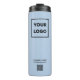 Advertise with your business logo, company name, website, and a customisable QR code on a light blue branded thermal tumbler. Replace the sample logo, text, and website URL with your own in the sidebar. Your brand symbol can be any shape and any colour. If you want the background colour to show through your logo, upload a version of your logo with a transparent background. This is eco friendly swag your employees, customers and clients will keep and appreciate!