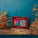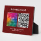 Upload Your Business Company Logo QR Code Here Add Text Slogan Elegant Modern Custom Template Horizontal Dark Red Tabletop Plaque with Easel.