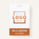 Easily personalise this custom employee name badge with your own company logo and qr code or barcode. Available with different background colours and attachments. No minimum order quantity.