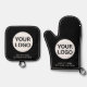 Custom oven mitt and pan holder for businesses and companies. Customise your company logo and text easily. Simple black and white.