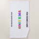 Custom Colours and Font - Beach Towels with Your Logo Name Website Promotional Personalised Company Office Promotion Business or Personal Customisable Colours and Text Modern Beach Towel Gift - Add Your Logo - Image - Photo / Name - Company / Website or E-mail or Phone - Contact Information / Address - Resize and Move or Remove / Add Elements - Image / Text with Customisation Tool. Choose / Add Your favourite Background and Text Colours / Font / Size. Please see my others projects / designs. You can also transfer this designs to more than 1000 Zazzle products. Please use your logo - image that does not infringe anyone's Copyright !!