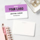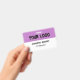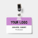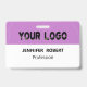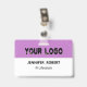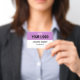 Stylish white and purple business badge with a personalised logo and text The flexible design is simple to edit and can be customised with your business's logo. To create a genuinely unique and expert look for your own business. There is no minimum order quantity.
