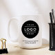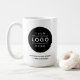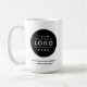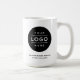 Custom two-sided branded coffee mug features your professional business logo design, along with wording for your business name, slogan, website, location, or other information that can be personalised. Simply add your company logo to the black round placeholder image space, and fill in with your preferred wording.