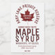 This simple, stylish food label with your name or company name surrounding a red sugar maple leaf on a white background looks good on mason jars, plastic jugs, and fancy maple syrup bottles.