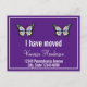 Two butterflies are the top of this purple postcard. The centre has white text for you to personalise. (Display text: I Have Moved) At the bottom, there's white text for your name(s) and new address. The name area is in a white script.