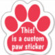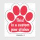 A custom text paw print vinyl decal sticker template with a red paw. You can customise the text with whatever you want. Personalise this cute paw sticker to talk about your dog. You can add your dog's name or your dogs's breed name, your favourite funny dog expression, Or, use it to promote your pet service business. Dog walking, grooming, pet sitting. A cute paw sticker for your car or truck.