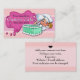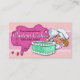 Adorable hand-painted blonde girl chef with an icing bag decorating a large seafoam green cake on this unique and memorable 2-sided business card. All text is customisable as is the background colour. This is so adorable that it is sure to get a prominent place on your customer's post board or fridge!