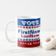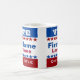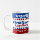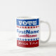 Red, white and blue campaign mug template with white stars. Makes a great gift for voters, campaign contributors, politicians, volunteers, memorabilia and more!