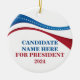 Customize your own political campaign Christmas ornament by adding your own name or another politician under this artistic American Flag in red, white, and blue. Add a custom name for president in 2024.