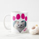 Start your day with a cup of love! Personalise this custom cat lover mug with your favourite cat photo inside a heart-shaped frame, surrounded by adorable pawprint decor. Perfect for cat moms, cat dads, and pet lovers, this unique and thoughtful gift makes every sip extra special. Whether for yourself or a fellow cat lover, this mug is a must-have! Customise yours today!