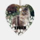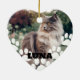 Honour your beloved feline with this custom ceramic ornament, featuring a photo of your cat and their name for a truly personal touch. This heart-shaped, high-gloss ceramic ornament is designed to showcase your favourite cat photo in a heart-shaped frame, with space to add their name. Ideal for decorating your Christmas tree, or as a year-round display piece, this ornament is a beautiful keepsake that captures the special bond you share with your pet.