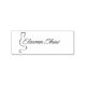 This simple "Signature" rubber stamp features a outline cat with a custom script name.