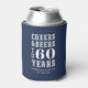 Commemorate a special birthday with these awesome personalised party favour can coolers. Modern navy blue and white design features "cheers and beers to XX years" in bold white lettering. Add the occasion and date beneath for a unique birthday party keepsake. Example shown for a 60th birthday party.