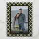 Contemporary classic Christmas holiday season green, white, black and gold foil coloured Buffalo lumberjack plaid tartan pattern. With option to customise or personalise with a photo and (limited) text of your choice. With room to customise or personalise the text on the front, and family name (or individual names) and a customisable season greeting message on the backside of the card.