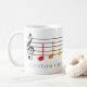 This colourful custom musical mug features a stave, a treble clef with rainbow music notes. Perfect for choir leader, a music school teacher or for a band director. Customise it with your own details and use the editing tool to make further adjustments such as font size and placement.
