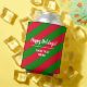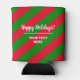 Custom Christmas Holiday can coolers with stripes. Personalised beverage cooler for party guests. Green and red striped design with custom quote, wishes, greeting, name or initial letters on front and back. Double sided xmas print personalised with name or monogram. Elegant script typography. Give away as party favour gift to friends, family, coworkers and more. Also for bottles. Cute accessories for home or office. Change quantity to get the cheap bulk price.