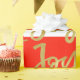 Gold Joy is the greeting in a modern font is on the front of this red and gold stripe design.