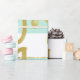 Gold Joy is the greeting in a modern font is on the front of this mint green and gold stripe design.