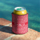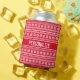Custom Christmas Holiday nordic snowflake pattern can coolers. Personalised beverage cooler for party guests. Red and white design with custom quote, wishes, greeting, name or initial letters on front and back. Double sided xmas print personalised with name or monogram. Vintage typography template. Give away as party favour gift to friends, family, coworkers and more. Also for bottles. Cute accessories for home or office. Change quantity to get the cheap bulk price.