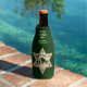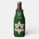 Modern, stylish green Christian Nativity Christmas bottle cooler, showing a cut-out nativity scene coloured in cream and pink shades, set against a rich green background. The text on the front says 'merry CHRIST mas' and 'The season starts with JESUS', which is based on the Bible verse from John 1:14 - The Word became flesh and dwelt among us. I have made 'The season starts with JESUS' customisable, in case you would prefer to change this to the more popular 'The season starts with CHRIST'. On the back, there is a CUSTOMIZABLE greeting, so you can create your own, or personalise your message and add your name(s). You can also choose from a wide selection of Christian Christmas cards and gifts by Berean Designs. Can cooler version listed separately.
