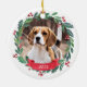 Decorate your tree or give a special gift this holiday season with this elegant Merry Christmas Beagle in a wreath design ornament, and matching decor. This beagle christmas ornament features a watercolor dog in a green and red wreath with holly and berries on one side, and your photo on the other side. Personalise with your photo, name front, year back . This beagle christmas ornament will be a favourite among beagle lovers, dog lovers, and animal lovers. Visit our collection for matching beagle christmas cards, home decor, and gifts. COPYRIGHT © 2020 Judy Burrows, Black Dog Art - All Rights Reserved. Custom Christmas Pet Dog Photo Beagle Ceramic Ornament