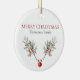 Custom Christmas Red Nosed Reindeer Pine Berries Ceramic Tree Decoration