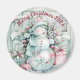 This charming Christmas magnet features a soft green and pink vintage snowman, bringing a nostalgic holiday feel to any space. The snowman is detailed with classic, retro touches, making it a delightful seasonal decoration. Customise it with your text for a unique, personal message—perfect for adding a warm holiday greeting to your fridge or gifting to friends and family!