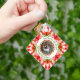 Custom Christmas Star Jolly Red Fun Pink Bright Green Hanging Ornament Photo Greeting Key Ring Decorations. Decorate your outfits for Christmas with this festive red, pink, and green geometric art Christmas Star key fob. Give your style a maximalist, cheerful, warm colour glow. Modern dopamine decor for merry Christmas parties. For people who love eclectic, colourful Christmas maximalism. Personalise this keychain by adding your own message or greeting and pictures.