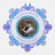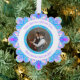 Custom Christmas Star Winter Blue Fun Green Bright Turquoise Hanging Ornament Photo Greeting Decorations. Decorate your home for Christmas with this festive blue, purple, green, and pink geometric art Christmas Star tree bauble. Give your home interior a maximalist, cheerful, cool colour glow. Modern dopamine decor for cosy nights in and merry Christmas parties. For people who love eclectic, colourful Christmas maximalism. Personalise this decor by adding your own message or greeting and picture.