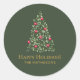 Custom Christmas Tree green red elegant family Classic Round Sticker