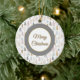 Whimsical illustrated pastel winter trees pattern with elegant gold "Merry Christmas" script lettering is featured on this stylish round ceramic ornament. Add your own text, message, names, year...on the back using the simple Template provided. Ideal lightweight holiday gift for mailing. The ornament is made of white porcelain, 2.87" in diameter and weighs 1.4oz. Full-color, full-bleed printing on both sides. Ideal lightweight holiday gift for mailing. See "About This Product" at side for more information.