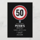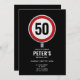 Red round traffic speed sign with a modern graphic style. Customise your age for the perfect cars and drivers themed birthday party.