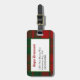 Stylish luggage tag done in the traditional Scottish clan Drummond green and red tartan plaid pattern. A green edged white text area, on the front has red and black text ready to personalise with your information. The perfect way to spot your luggage, and makes a great gift idea.