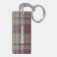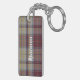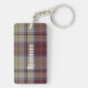 Stylish key chain done in the maroon, cream, yellow, and black Harmon clan Scottish tartan plaid pattern. Bold white old world style text, on the front and back, is ready to personalise for yourself or as a great gift idea.
