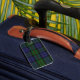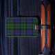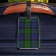 Stylish luggage tag done in the traditional Scottish blue, green, black, yellow, and red clan MacEwen tartan plaid pattern. A blue edged white text area, on the front has black text ready to personalise with your information. The perfect way to spot your luggage, and makes a great gift idea.