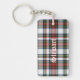 Stylish key chain done in the red, green, white Stewart Dress Scottish tartan plaid pattern. Bold white old world style text, on the front and back, is ready to personalise for yourself or as a great gift idea.
