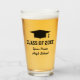 Custom class of graduation party drink glass for graduate students. Cute gift idea for high school grads with personalized school name and class of year etc. Graduation hat / cap design with cool typography. Also cute for reunion parties, college, university etc.