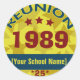 Customise this Class Reunion pin or sticker with your graduation year, reunion number, and school name. Lively gold stars background with red and blue design. Available in pin button or sticker. Fully customisable for your reunion event.