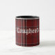 Great looking Scottish clan mug done in the classic dark red, black, and white Lougheed plaid pattern.  Old world style text in white reads Lougheed and is customisable to read what you want.