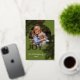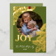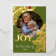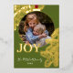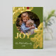 Contemporary classic Christmas holiday season greeting card with golden pine tree needles wreath leaves pattern on a classy dark green background, with real gold foil JOY wish text. With option and room to customise the text, family name and year date, and add a personal photo of your choice on the front, and a customisable season greeting message on the backside of the card.